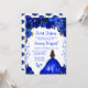 Este elegante e glamouroso e doce convite de 16 anos apresenta uma bela princesa com cabelo castanho e pele clara em um vestido azul real de bola. O texto combina o script manuscrito e as fontes sans serif modernas para um aspecto elegante e sofisticado. Os arranjos florais, borboleta e confete criam a mistura perfeita de rústico e chic. Gráficos por www.etsy.com/uk/shop/SunflowerDayLove