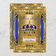 Convites Royal Blue Damask Dourado Crown Chá de fraldas Boy