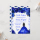 Este elegante e glamouroso e doce convite de 16 anos apresenta uma bela princesa com cabelo castanho e pele escura em um vestido azul real de bola. O texto combina o script manuscrito e as fontes sans serif modernas para um aspecto elegante e sofisticado. Os arranjos florais, borboleta e confete criam a mistura perfeita de rústico e chic. Gráficos por www.etsy.com/uk/shop/SunflowerDayLove