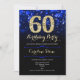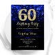 60º convite de aniversário. Elegante design azul real com ouro brilhante. Apresenta na moda diamante, luzes e fontes de script. Homens ou mulheres convidam no dia. Perfeito para uma festa de aniversário adulta na moda. Personalize com seus próprios detalhes. Envie-me uma mensagem se precisar de mais personalização. Impressos convites Zazzle ou modelo de impressão digital instantânea para download.