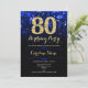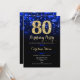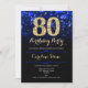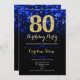 convite de aniversário 80. Elegante design azul real com ouro brilhante. Apresenta na moda diamante, luzes e fontes de script. Homens ou mulheres convidam no dia. Perfeito para uma festa de aniversário adulta na moda. Personalize com seus próprios detalhes. Envie-me uma mensagem se precisar de mais personalização. Impressos convites Zazzle ou modelo de impressão digital instantânea para download.