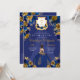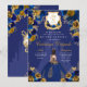 Convite de Aniversário Real Azul e Dourado da Elegante Floral Quinceanera