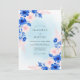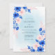 This design features a wash of sky blue watercolor accented by vibrant cobalt and royal blue blossoms. Delicate blush pink cosmos flowers and soft-toned foliage create a romantic, airy atmosphere perfect for a seasonal event. The painterly style provides an ethereal and sophisticated aesthetic that captures the essence of a fresh spring day.