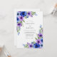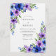 A painterly watercolor design features enchanting blooms in shades of deep blue and vibrant purple. Delicate greenery cascades across the arrangement, evoking a whimsical, artistic atmosphere for your special day. This design brings a touch of natural beauty with a sophisticated, painterly touch.