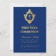 Convites Royal Blue First Commune Faux Dourado Cross Crest