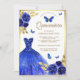 Convites Royal Blue Floral Borboleta Dourada Quinceanera