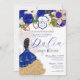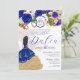 Convites Royal Blue Floral Crest Rosa Charro Quinceañera