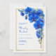 Invite your guests to a celebration of opulent beauty with this striking botanical masterpiece. The design features a lush, asymmetrical cluster of vibrant royal blue orchids cascading from the upper right corner, their petals rendered with fine, realistic veining and delicate golden highlights. Intricate gold foil branches and tiny azure buds are woven throughout the arrangement, all framed by a sophisticated double gold line border. Set against a clean, subtly textured white background, this composition offers a high-contrast, luxurious aesthetic that feels both modern and timeless. This design is a versatile choice for any season where elegance is the top priority. It is a premier choice for a sophisticated nautical-inspired beachfront ceremony, a vibrant spring garden reception, or a high-end summer gala. The crisp white background and bold sapphire tones make it an ideal match for modern city weddings, black-tie estate events, or luxury destination celebrations in the Mediterranean or tropics. Whether you are hosting an outdoor sunset ceremony or a formal ballroom dinner, these stunning orchids set a tone of prestige, artistic refinement, and high-end romance.