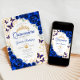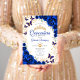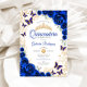 Royal blue, gold and white Quinceanera celebration invitation. Features, script font, gold butterflies, watercolor roses and tiara. Perfect for an elegant princess style glam celebration. Personalize with your own details. Printed Zazzle invitations or instant download digital printable template.