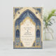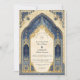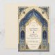 An opulent Islamic wedding design featuring a teal and gold arched frame inspired by mosque architecture and Persian artistry. With intricate floral motifs and geometric symmetry, this invitation exudes elegance, spirituality, and timeless cultural refinement — ideal for a luxurious Islamic wedding.
