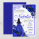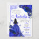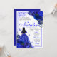 Convite de Aniversário do Royal Blue Floral Quinceanera