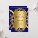 Qualquer Festa de aniversário de idade Imagens de Óculos Dourados Real Azul. Ornamentado Elegante Jewel Gem Ouro Festa de aniversário Dourada camada Dourada. Personalize com seus próprios detalhes.