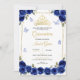 Celebre seu marco em estilo com este elegante Convite Real Dourado Quinceañera. Com uma coroa de ouro real, borboletas azuis flamejantes, uma sofisticada borda de ouro, e flores azuis exuberantes, este convite é perfeito para um tema de princesa Mis Quince Años. Faça uma primeira impressão real com este convite de marasmo glamouroso, porque toda princesa merece uma celebração tão bela quanto ela é. BRT352