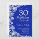 Convite de festas de aniversário de 30 anos floral azul real. Design elegante com rosas, folha de falso prata e letra de script de tipografia. A Trendy convida o cartão perfeito para uma festa de na moda. Pode ser personalizado para qualquer idade. Impressos convites Zazzle ou modelo de impressão digital instantânea para download.