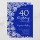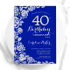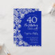 Convite de festas de aniversário de 40 anos floral azul real. Design elegante com rosas, folha de falso prata e letra de script de tipografia. A Trendy convida o cartão perfeito para uma festa de na moda. Pode ser personalizado para qualquer idade. Impressos convites Zazzle ou modelo de impressão digital instantânea para download.