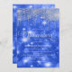Elegante convite de aniversário azul-real Quinceañera para meninas com luzes de cordas prateadas e bokeh cintilante com luzes de festa.