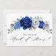 Elegante tema azul-real de prata branca você será minha madrinha de casamento Convite apresentando um buquê elegante de flores azuis, Marinhos, prata, cor branca pura de rosa e folhas verdes de eucalipto. Entre em contato comigo para obter ajuda sobre a personalização ou se você precisar de outro produto com este design.