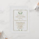 Símbolo da elegância, abundância e loftineza! Design de cartão único com uma crista real de folha de ouro falso, uma armação delicada, ramos de azeitona com uma flor branca sobre fundo de textura branca. Use a ferramenta Personalizar para adicionar suas informações. Por favor, visite minha Coleção Real de Casamentos de Crest Lush Greenery, Dourada.