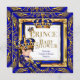 Convites Royal Prince Chá de fraldas Blue Dourado Crown Bru