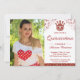 Convide seus convidados com este elegante convite da Quinceañera apresentando uma bela coroa vermelha e uma tipografia moderna em um fundo branco. Basta adicionar os detalhes do seu evento neste modelo fácil de usar e enfeitar este cartão com a sua foto favorita para torná-lo um convite único. Sacudir a placa para revelar uma textura falsa vermelha de brilho na parte traseira da placa.