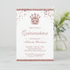 Convide seus convidados com este elegante convite da Quinceañera apresentando uma bela coroa de ouro rosa e uma tipografia moderna em um fundo branco. Basta adicionar os detalhes do seu evento neste modelo fácil de usar para torná-lo um convite de tipo único. Sacudir a placa para revelar uma textura azul de brilho rosa dourado na parte traseira da placa.