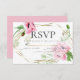 INSERIR RSVP DE CASAMENTO | Papoilas de cor-de-água cor-de-rosa com verde adornam uma moldura geométrica de diamante multifacetada dourada. O reverso é uma cor complementar coordenada. Personalizar texto, estilo de fonte, cor e tamanho. Criamos que esta modelo é para facilitar a personalização com suas próprias informações. Esta é parte de um Conjunto completo de artigos para casamento com casamento, chá de fraldas e outros artigos de papelaria para eventos semelhantes desenhados pela WhimsicalArtwork™.