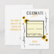 RSVP em script cursivo de fluxo amarelo profundo. Celebrar em negrito tipo preto. Os girassóis amarelos ouros enquadram as suas respostas. Personalize uma mensagem, uma citação ou um poema no verso e "assine" seus nomes. O amor está escrito na letra do artista. Os girassóis são retirados de uma pintura original. Veja também a suíte de casamento de girassol de cheio.