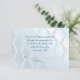 Fundo de damasco azul suave e brilho pérola para RSVP de casamento.