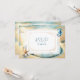 Cartões RSVP de casamento românticos e elegantes da costa oceânica. Areia macia e marrom, água azul pálida com um dólar na praia. Cavalo do mar com aquarela e peixe-estrela.