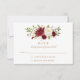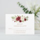 Placa de Resposta RSVP de Casamento Elegante Branca de Borgonha Vermelha Floral