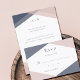 Um design moderno e chic com formas geométricas sobrepostas para criar diferentes tons de rosa-pincel e azul em um fundo branco puro. O convite correspondente está disponível em: https://www.zazzle.com/blush_navy_monogram_geometric_modern_chic_wedding_invitation-256922893679510831