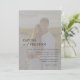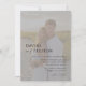 Convite para casamento de fotos com os seus nomes em caracteres elegantes, serif bold, com "e" e "recepção a seguir" na moderna letra manuscrita. Personalize com seus detalhes de casamento embaixo. Por trás da tipografia, há uma camada branca semitransparente cobrindo a foto de sua escolha. Escolha uma foto clara e mais clara para realmente fazer o texto pop! A parte traseira tem detalhes adicionais e placas de gabinete de fazer de código QR opcionais.