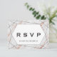 Este cartão de RSVP de escolha de menu de mármore geométrico em rosa dourado é perfeito para um casamento moderno. O design apresenta uma textura de mármore com veias em rosa dourado falso sobreposta a um padrão geométrico de diamante. Este cartão de resposta de casamento convenientemente pergunta aos convidados qual refeição eles gostariam de ter na sua recepção.