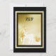 Cartão de resposta RSVP de Aniversário Elegante personalizável com papel de carta de correspondência unicórnio e preto e dourado