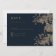 O Elegante marinho azul e ouro brilhando, o chamado RSVP de Casamento floral é perfeito para casais que buscam um toque bonito e simples para o seu grande dia. Este vintage cambalhota de flor dourada brilha nos seus detalhes de casamento. Dê aos seus convidados um maravilhoso primeiro vislumbre do seu casamento para vir este convite será uma adição fantástica aos seus eventos de casamento. Todas as designs são impressas.