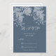 Um simples convite de RSVP de Casamento de Lace Flóral Azul e Branco. Este pastel minimalista colore o convite de casamento floral de verão é perfeito para qualquer garota elegante e sofisticada. Esta design é ideal para um evento de casamento de moda e na moda. Personalize este design com sua mensagem e informações personalizadas. Todas as designs são impressas.