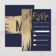 Convites RSVP de Traços Simples Dourados Azul do Marinho Mo