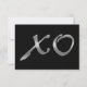 Um dramático "XO" prateado decora a parte de trás deste RSVP preto e prateado elegante. Este estilo é ainda mais aprimorado com uma simples resposta Sim/Não para circular. Role para baixo para ver itens coordenados nesta nova coleção da moda.