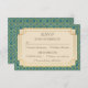 O cartão da resposta do casamento que caracteriza um teste padrão elegante geométrico do fã do art deco com ouro do falso ventila. Esquema de cores do art deco do vintage na cerceta e no ouro com um quadro da casca de ovo. Rsvp perfeito para um casamento temático ou partido em rujir 20s.