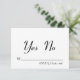 Um dramático "XO" de prata decora a parte de trás deste RSVP preto e prata elegante. Este estilo é ainda mais aprimorado com uma simples resposta Sim/Não para circular. Role para baixo para ver itens coordenados nesta nova coleção da moda.