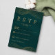 Convites RSVP geométrico de ouro verde-escuro elegante e el