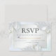 INSERIR RSVP DE CASAMENTO | Fundo luminescente luminescente de pérolas azuis geladas com folhas de rosa luminosas, folhas de eucalipto, respiração do bebê e cinzas brilhantes. O reverso é uma cor complementar coordenada. Este design parece especialmente bonito na escolha do papel do Shimmer Pérola. Personalizar texto, estilo de fonte, cor e tamanho. Criamos que esta modelo é para facilitar a personalização com suas próprias informações. Esta é parte de um Conjunto de Papelaria de Casamento com casamento, chá de fraldas e outros artigos de papelaria. Arte original © por WhimsicalArtwork™.