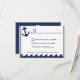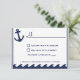 Convites náuticos de rsvp marinho azul e branco - o design da frente é composto por uma âncora, corda e ondas do fundo do oceano. Os designs, o texto e os contornos estão em marinho azul com um fundo branco. No verso há uma âncora maior e uma borda branca sobre um fundo azul marinho. Por padrão, o papel é definido como estoque básico de convites, mas pode ser alterado clicando em 'escolher seu estilo' e usando a caixa suspensa Papel, selecione uma das opções. Cada convite vem com um envelope branco. Para alterar a fonte, o tamanho da fonte ou a cor da fonte, clique no botão personalizar abaixo do rsvp do casamento náutico. Observe que você pode ter que personalizá-lo se determinadas palavras forem muito longas e, portanto, ele ajustado melhor. Se estiver satisfeito com a configuração da fonte, você poderá usar o recurso personalizar para alterar as informações da demonstração para seus detalhes pessoais. Clicando nas pequenas imagens da frente/traseira da placa com mudança para aquele lado para que ela possa ser alterada. Quando terminar, verifique se as informações aplicadas estão corretas e se você não tem erros ortográficos em ambos os lados da placa. Outros produtos que acompanham este.