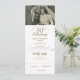 Um convite e cartão de RSVP tudo-em-um para você personalizar com sua foto de casamento favorita e os detalhes da sua celebração de bodas de ouro de 50 anos em tipografia dourada chique. O verso apresenta confetes de coração de amor dourados. O convite inclui um cartão de RSVP que pode ser cortado e detalhes de informações do convidado. Projetado por Thisisnotme