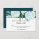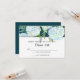 Cartão de retorno de resposta RSVP para convites formais de casamento. Estilo de safra botânica, mas novo trabalho de arte das flores mais prolíficas e bonitas do verão, as drangas brancas de bola de neve são emparelhadas com folhas de pedras e folhagem. O lado inverso tem um fundo azul de pavão profundo e rico. Copyright, Audrey Jeanne Roberts.