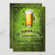 Rua, Dia de Patrick, ou convites para temas irlandeses com uma caneca de cerveja e camarões em fundo verde.