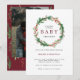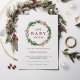 Este convite para chá de fraldas apresenta um morango de borboleta e uma coroa de pinheiro emparelhados com uma fonte burgundy divertida. Edite com facilidade o texto *maioria* para atender às suas necessidades de eventos. Alterar a cor de fundo. Este convite para chás de fraldas é perfeito para o seu Natal, inverno ou Chá de fraldas de férias.