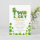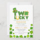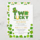 Rua, Dia 2 de Patrick, Convite para segundo aniversário de Shamrocks Sortudos. Rua bonita, no dia de Patrick o segundo convite de aniversário do bebê "Dois Sortudos" com chapéu de duende e biscoito de shamrock e encantos sortudos.