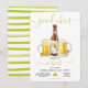 Boa alegria e muita cerveja, Rua, Convite de festas do Dia do Patrick. Possui uma garrafa de cerveja com pinceladas, chapéu de duende e duas canecas de cerveja com trevo. Excelente simples e moderno.