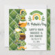 Ruas divertidas. Convites do Dia de Patrick com xadrez verde, barbatanas de recorte de papel, ferraduras, cerveja, duendes e potes de ouro.